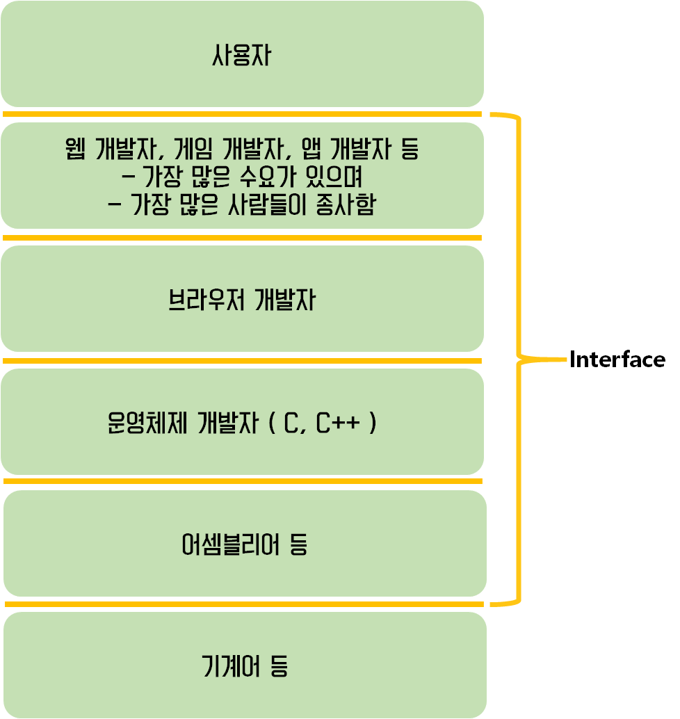 브라우저 개발자의 경우 운영체제 개발자가 만들어 놓은 API 를 이용