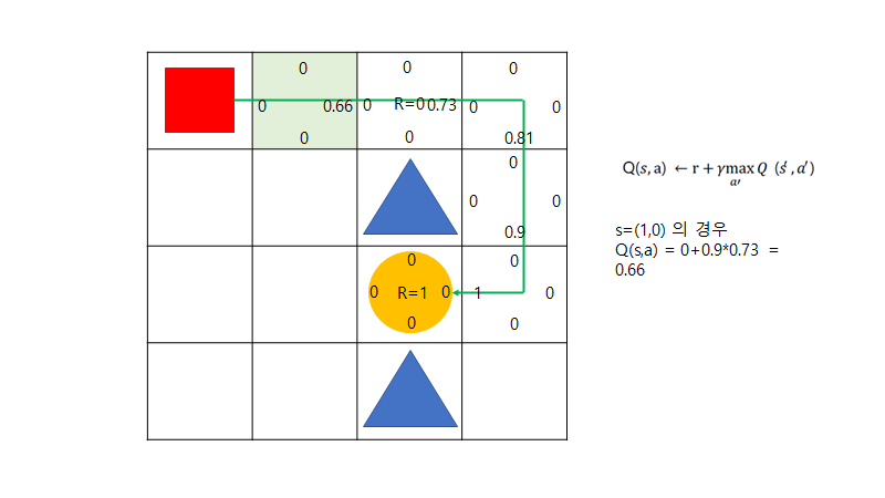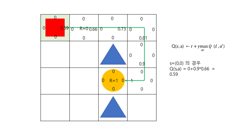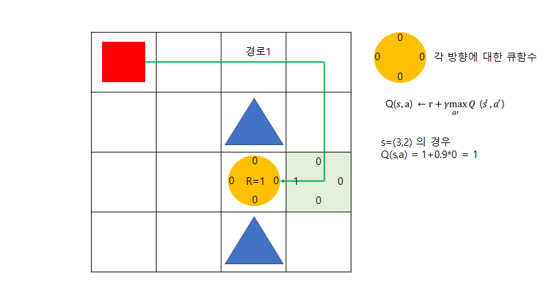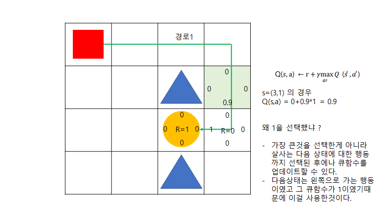 큐함수를 업데이트하기 위해 벨만기대방정식을 이용한다.