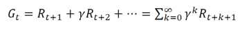 - Discounted return : 보상과 감가율을 통해 얻게 되는것 : G로 표현