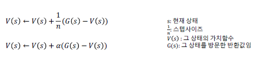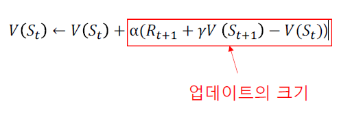 - 시간차예측에서 가치함수 업데이트 식