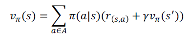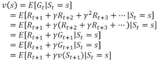 - 벨만 기대 방정식 : 현재 상태의 가치함수와 다음상태의 가치함수의 관계를 나타냄