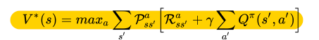 - 최적의 가치함수를 벨만 최적방정식 형태로 나타낸 식 : 큐함수를 상태가치함수로 고쳐쓰면 된다.