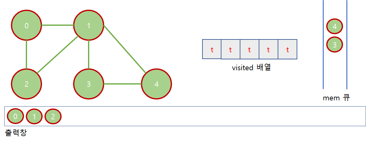 2. "2"와 인접한 "0" 과 "1" 은 이미 방문한 노드이므로 따로 추가되는 노드는 없다.