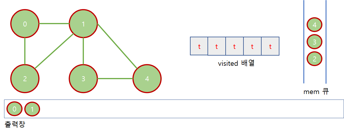 - mem 큐 : dfs 와는 다르게 큐를 사용한다.