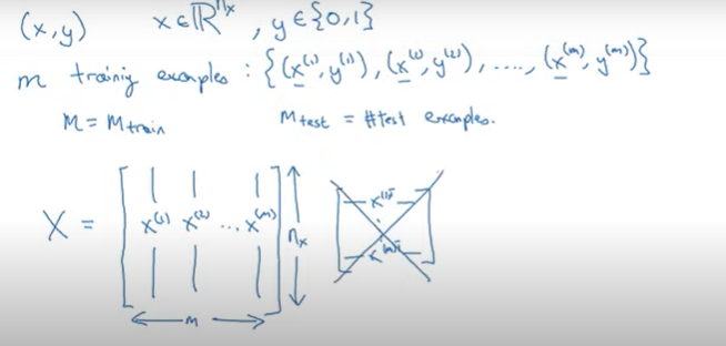 즉 X 와 Y 모두 트레이닝 세트의 집합 하나하나마다 열로 배치하는것이 유리하다 ( 각각의 열은 관계가 없는 데이터 )