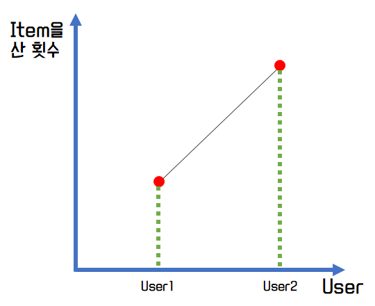 차이점은 User2는 해당 아이템을 많이 사는 사람이라 벡터 자체가 클 뿐이고,